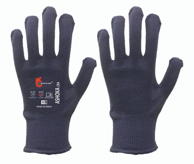 ASHOKA BK Cut Resistant 4 gloves are designed using high-quality black aramid spun fibers. These gloves offer all the benefits of traditional para-aramid gloves with added stain resistance due to their black color, increasing product life. Ideal for heavy-duty industrial use and metal sheet handling, these gloves provide a perfect balance between strength, comfort, and durability.