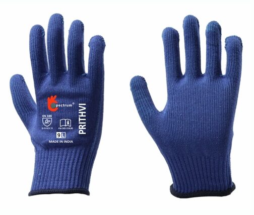 The PRITHVI Cut Resistant 4 gloves are built for high-performance industrial tasks that demand unmatched safety and comfort. Crafted from a durable combination of metal wire and polyamide fibers, these gloves offer excellent cut resistance and abrasion protection. The polyamide platting enhances comfort, allowing extended usage without fatigue.